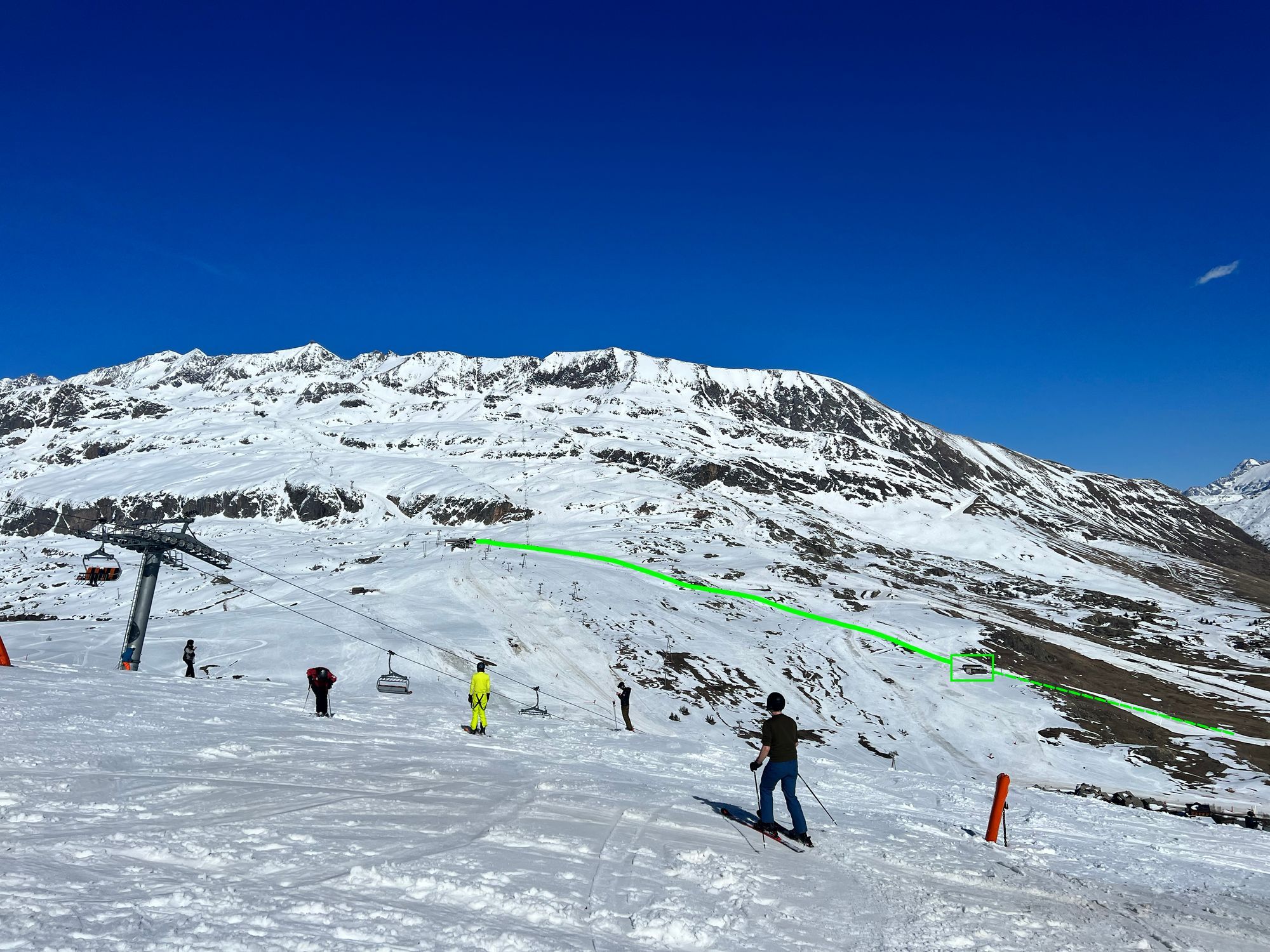 Съществената новина е, че седалковата част е премахната и Rif Nel вече функционира като изцяло гондолова линия. Така гостите от Bergers получават по-логична и директна връзка към „епицентъра“ на зоната при 2100 м – откъдето могат да продължат към Oz-en-Oisans, към останалите писти на Alpe d’Huez, или да се качат с Pic Blanc 2 към 2700 м.