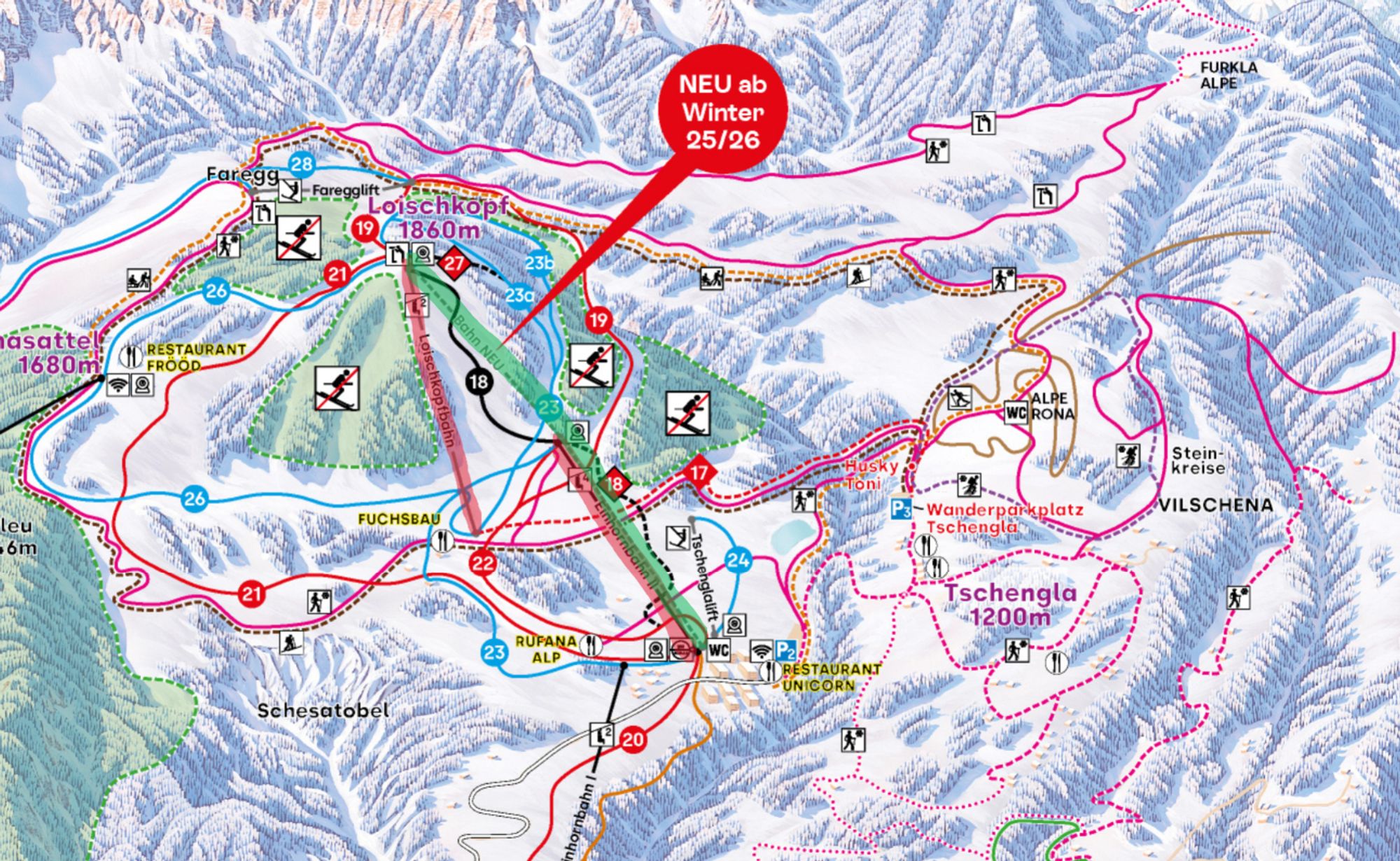 В Brandnertal, от страната на Bürserberg, това лято се работи по голям проект за обновление. Два лифта, Einhornbahn II (4-местен седалков лифт) и Loischkopfbahn (2-местен седалков лифт), са заменени с нова гондолна линия. Кабините предлагат място за 10 души и вече могат да транспортират и планински колоездачи през летния сезон.