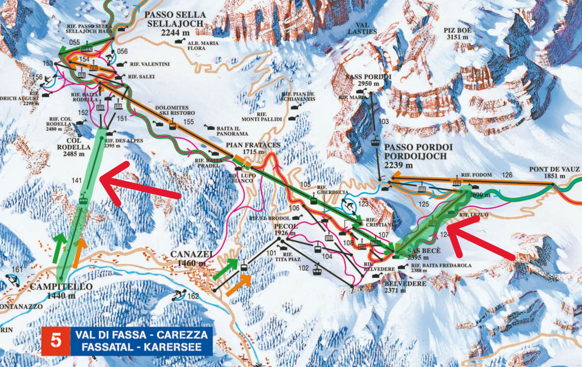Досегашният кабинков лифт с капацитет 125 души беше в експлоатация повече от 40 години и вече не отговаряше на съвременните изисквания. Новата система значително подобрява връзката към зоната на Sella Ronda, като намалява времето за изчакване и увеличава пропускателната способност в един от най-натоварените възли на Dolomiti Superski.