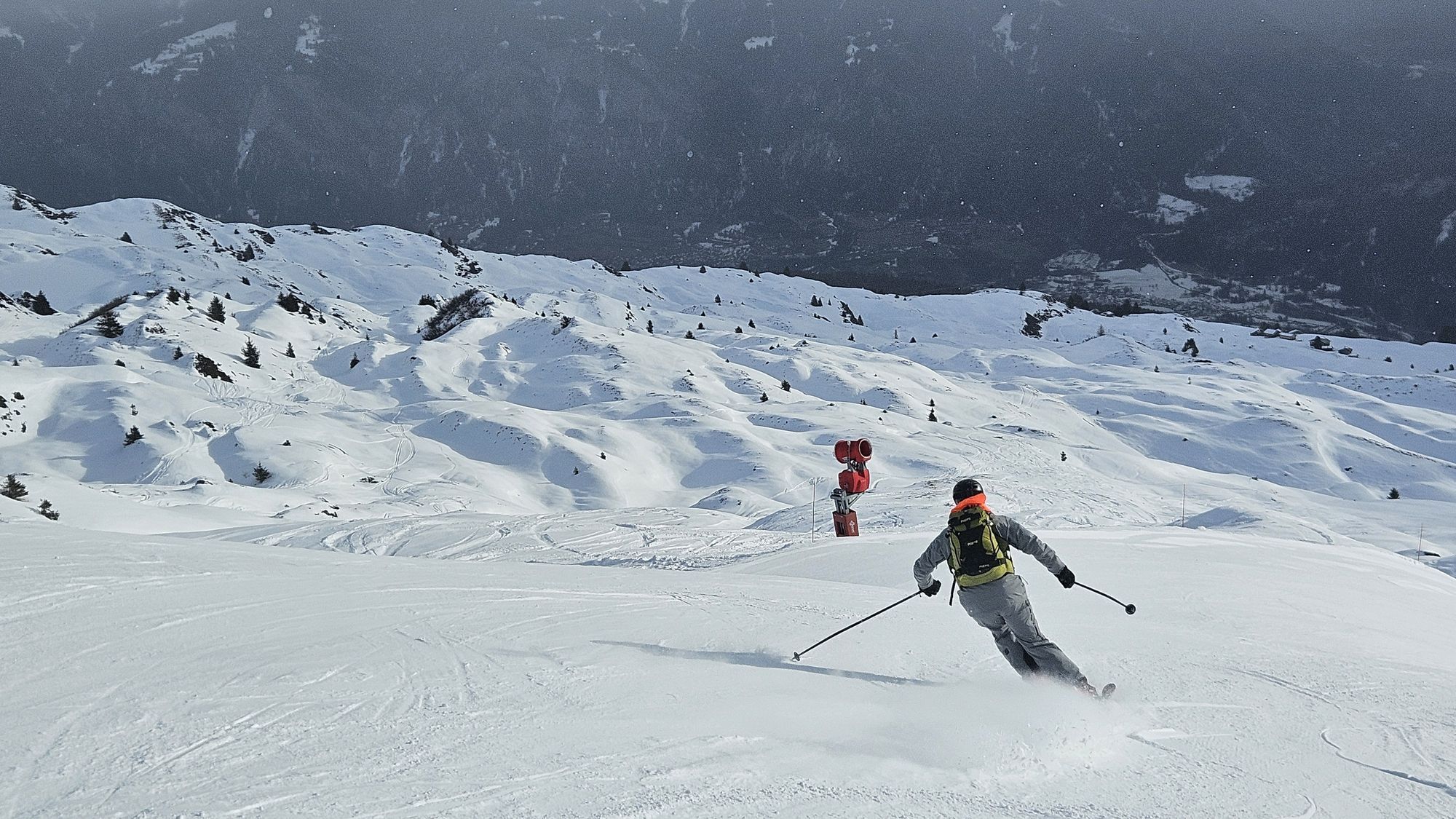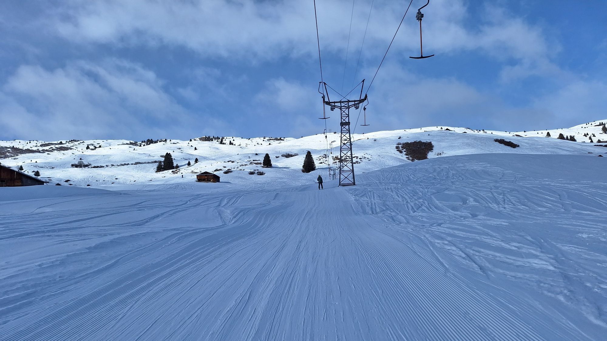 Sarn Heinzenberg предлага множество варианти за спускания. Терена е подобен на този в Tschappina: открит, вълнообразен и хълмист, с малко растителност. Почти всички писти бяха отворени, като общо се насладихме на около 20 км червени писти. „Bodenwellen“ позволяват всяко спускане да се кара по различен начин, добавяйки разнообразие спрямо картата на пистите. Зоната е много добре организирана – след всяко спускане се връщате на същия лифт, което прави загубването почти невъзможно.