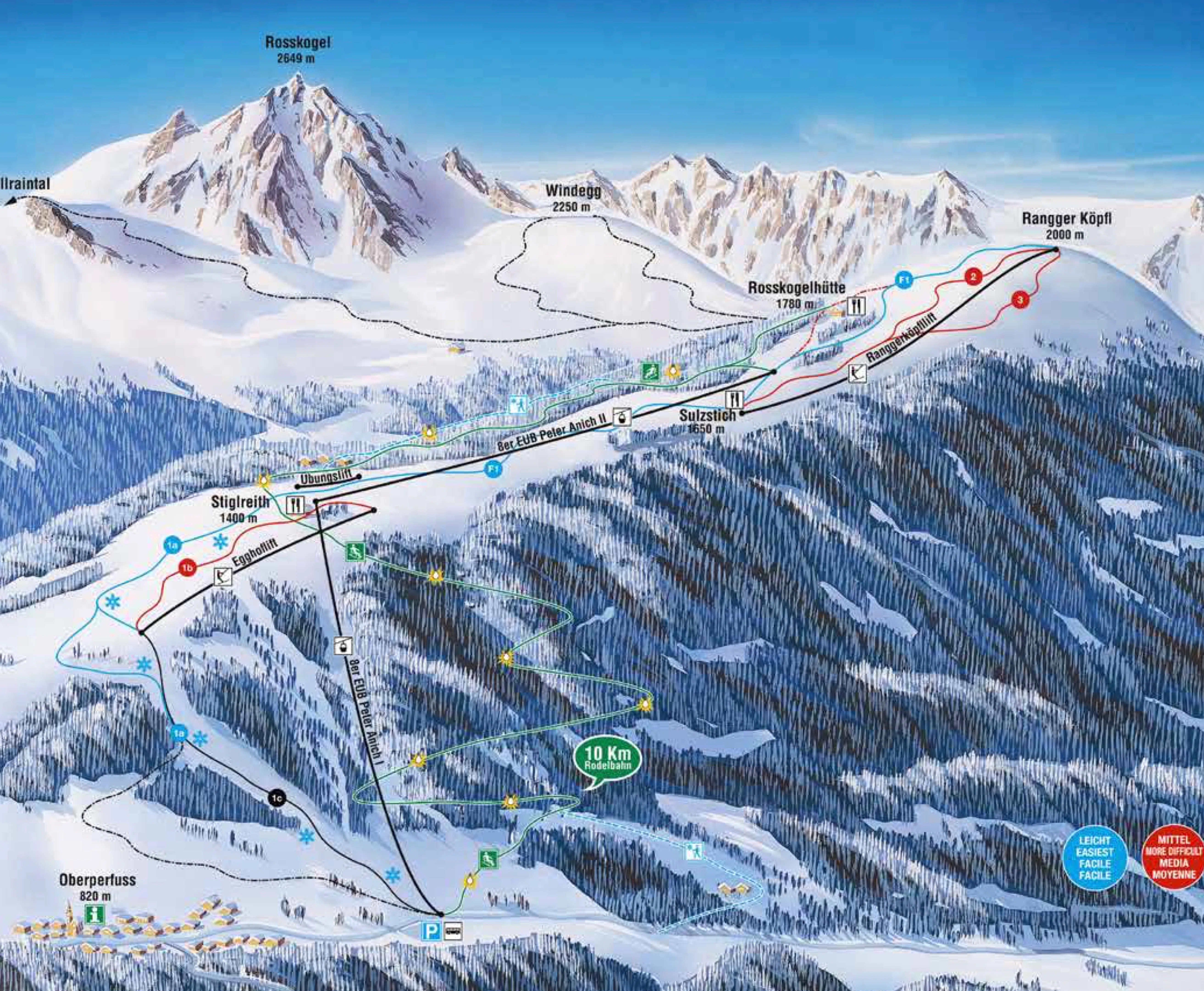 Най-снежната част се намира под връх Hochälpelekopf (1467м) близо до Bödele, където се редуват няколко сини писти. Посредством дълго спускане между дърветата се стига до долния подрайон на Schwarzenberg. Тук се намират предимно червени писти.