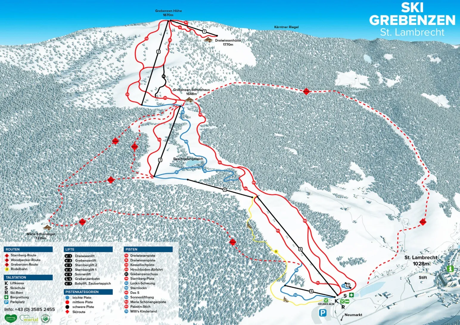 С шест планини и над сто километра писти, Kleinwalsertal-Oberstdorf предлага писти за всички умения. Въпреки че районът е особено популярен сред семействата поради спокойната си атмосфера и леките склонове, напредналите скиори също ще намерят достатъчно предизвикателства на по-високите склонове.