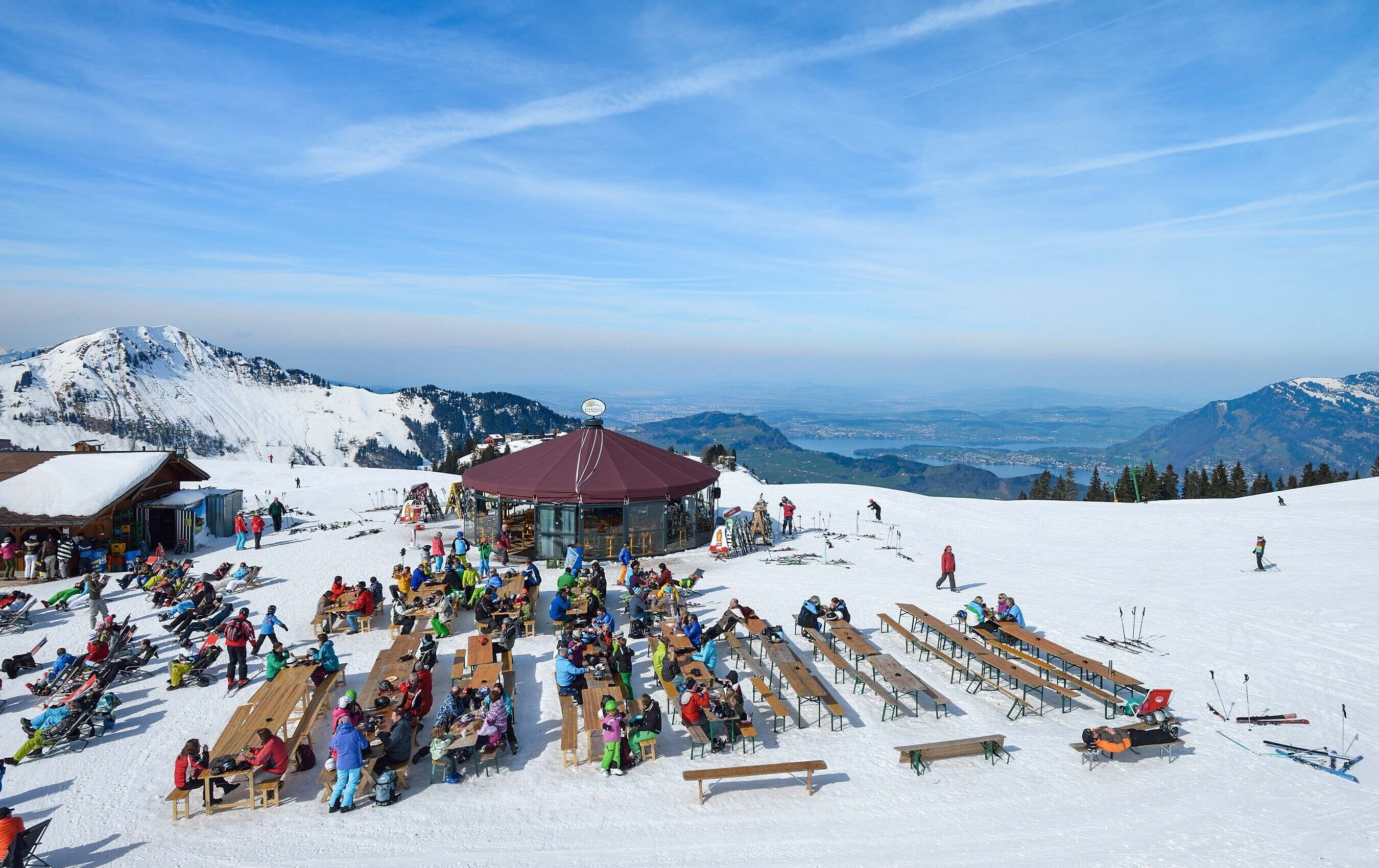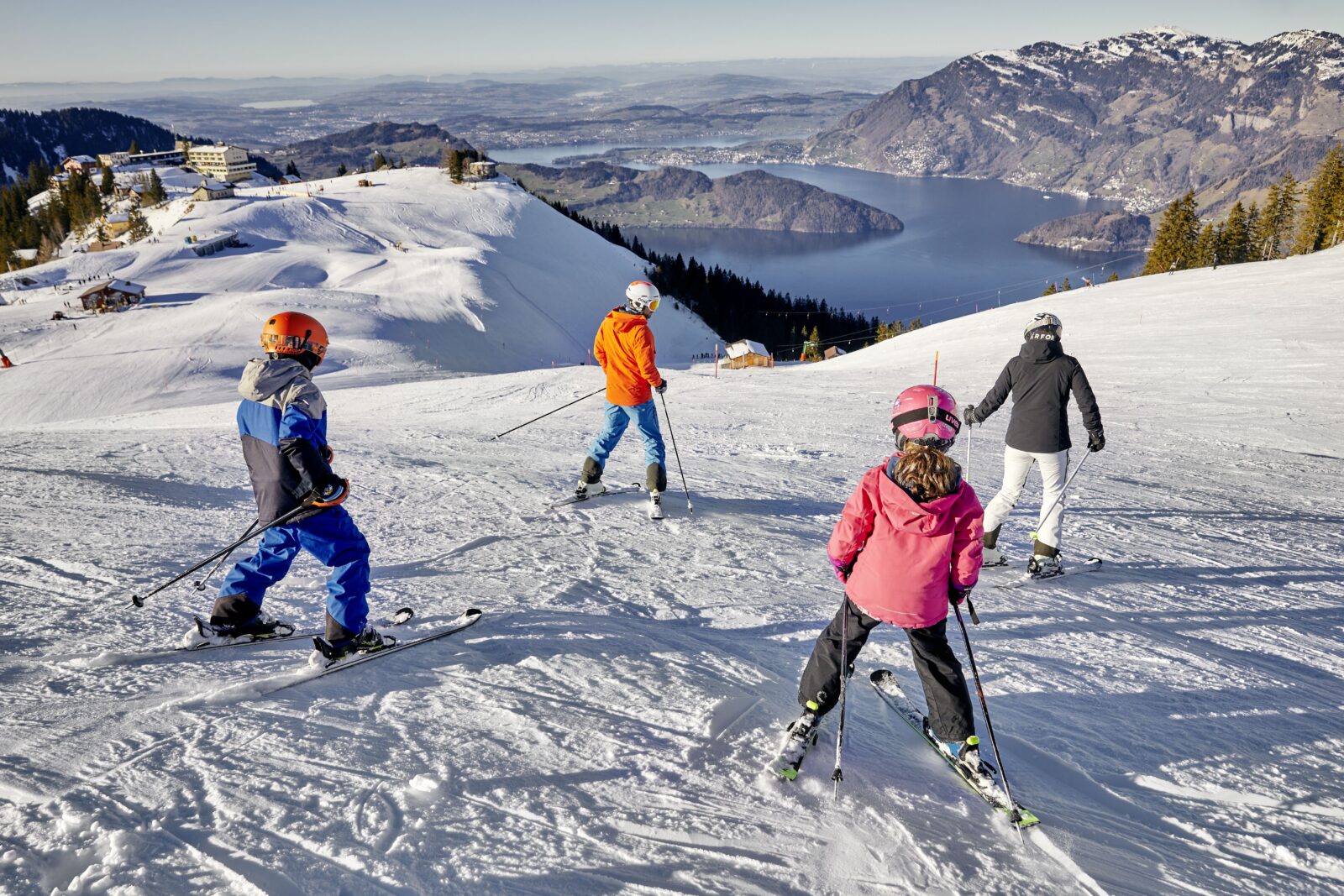половината от пистите са сини, с впечатляваща гледка към Lake Lucerne.
